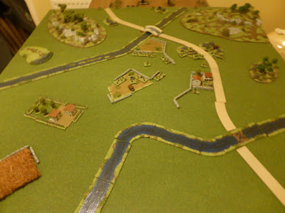 The Italians would be entering via the Northern table edge, with the Greeks deployed roughly in the middle of the table, between the bridge and the town.