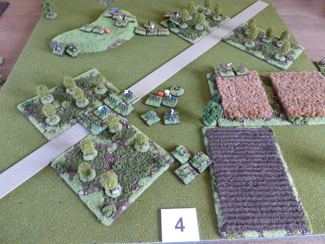 The end of Turn 3 and the game, as the Moravian's were being flanked and had little left with which to achieve a pyrrhic breakthrough of offer any meaningful resistance. |